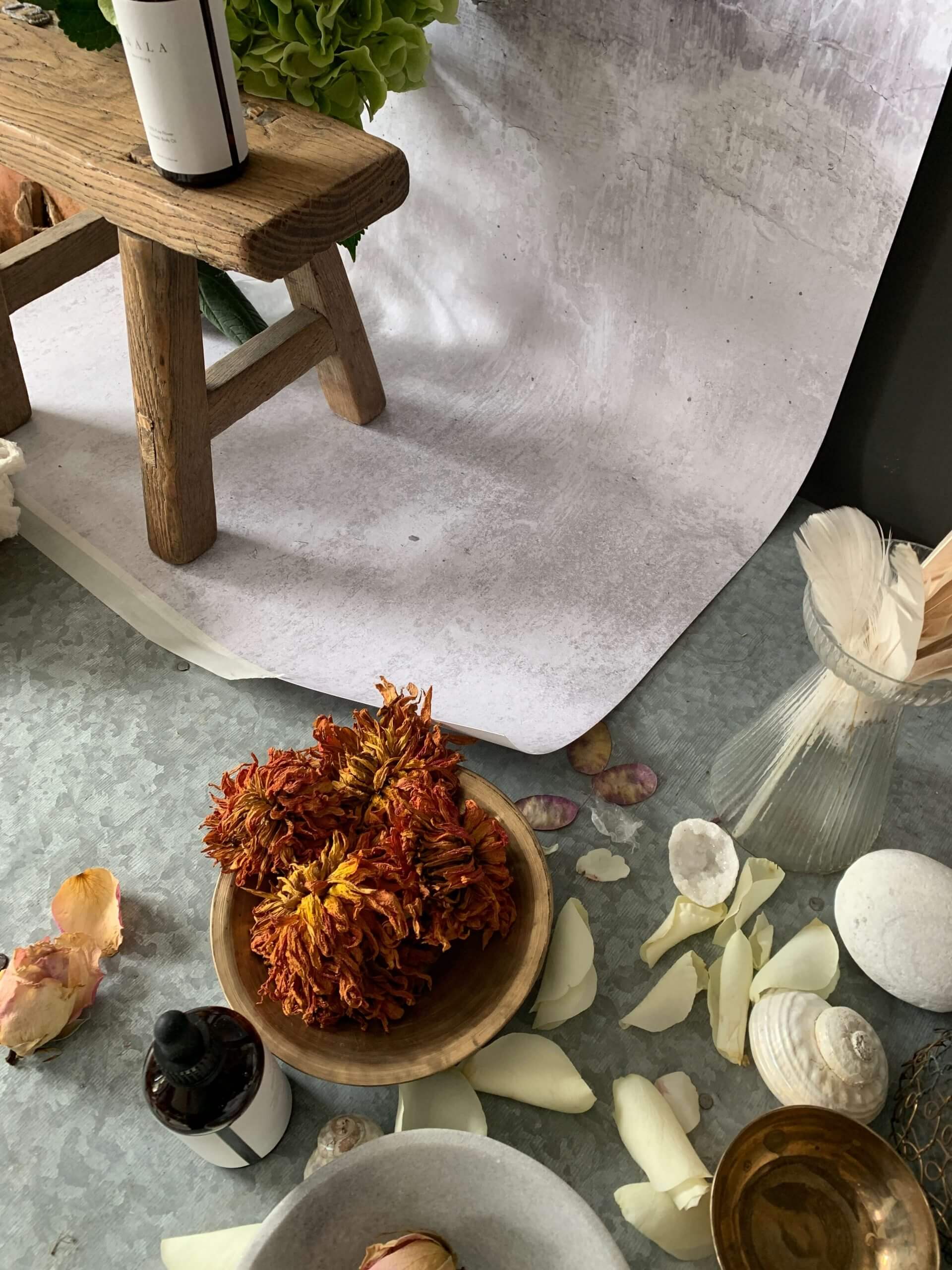 I knew my images needed to completely reflect my desire for a stunning, yet pure aesthetic. They had to showcase the beauty of the ingredients, as well as the ancient Ayurvedic ritual element. The art of anointing with pure flower oils had to be transported from a bygone era in India, and into a modern setting.