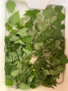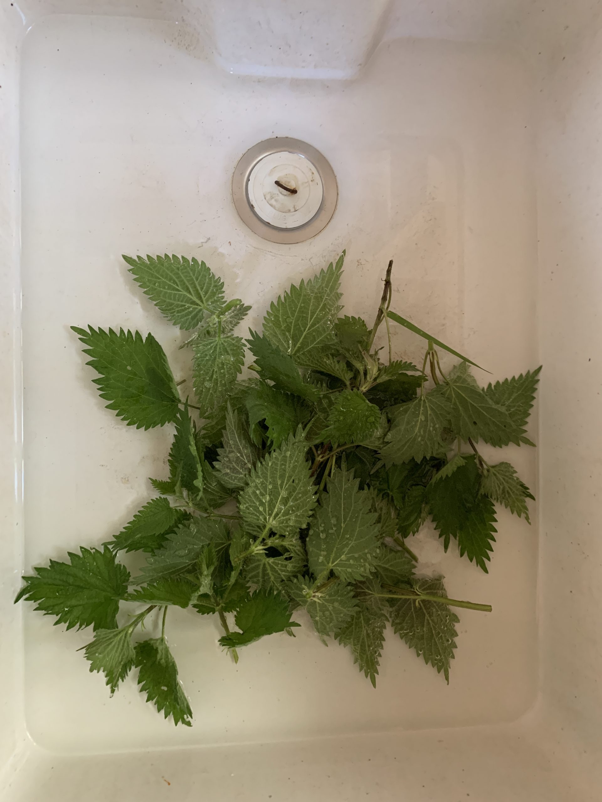 Wearing gardening or rubber gloves, pick four or five large handfuls of nettles. The first five or six newer leaves from the top of the plant are the ones to go for.